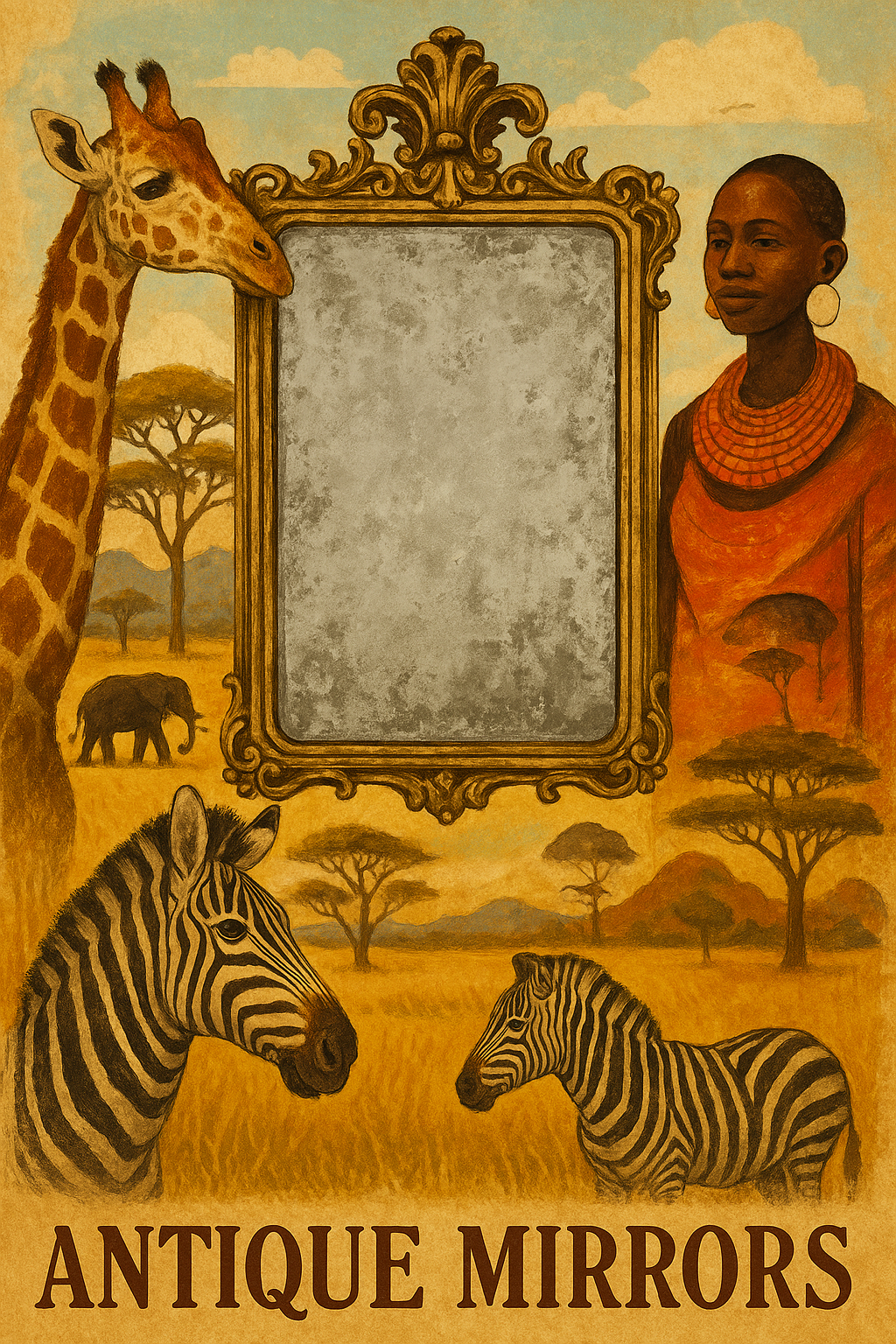 - Distressed finishes that mimic aged silvering and patina